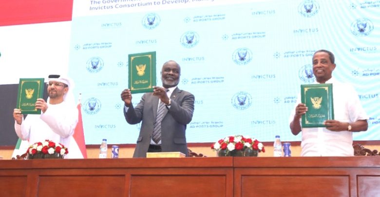 ووقع عن حكومة جمهورية السودان وزير المالية والتخطيط الإقتصادي دكتور جبريل إبراهيم وعن مجموعة موانئ أبوظبي العضو المنتدب والرئيس التنفيذي للمجموعة محمد جمعة الشامسي فيما وقع رجل الأعمال أسامة داؤود عن مجموعة انفيكتوس للإستثمار.